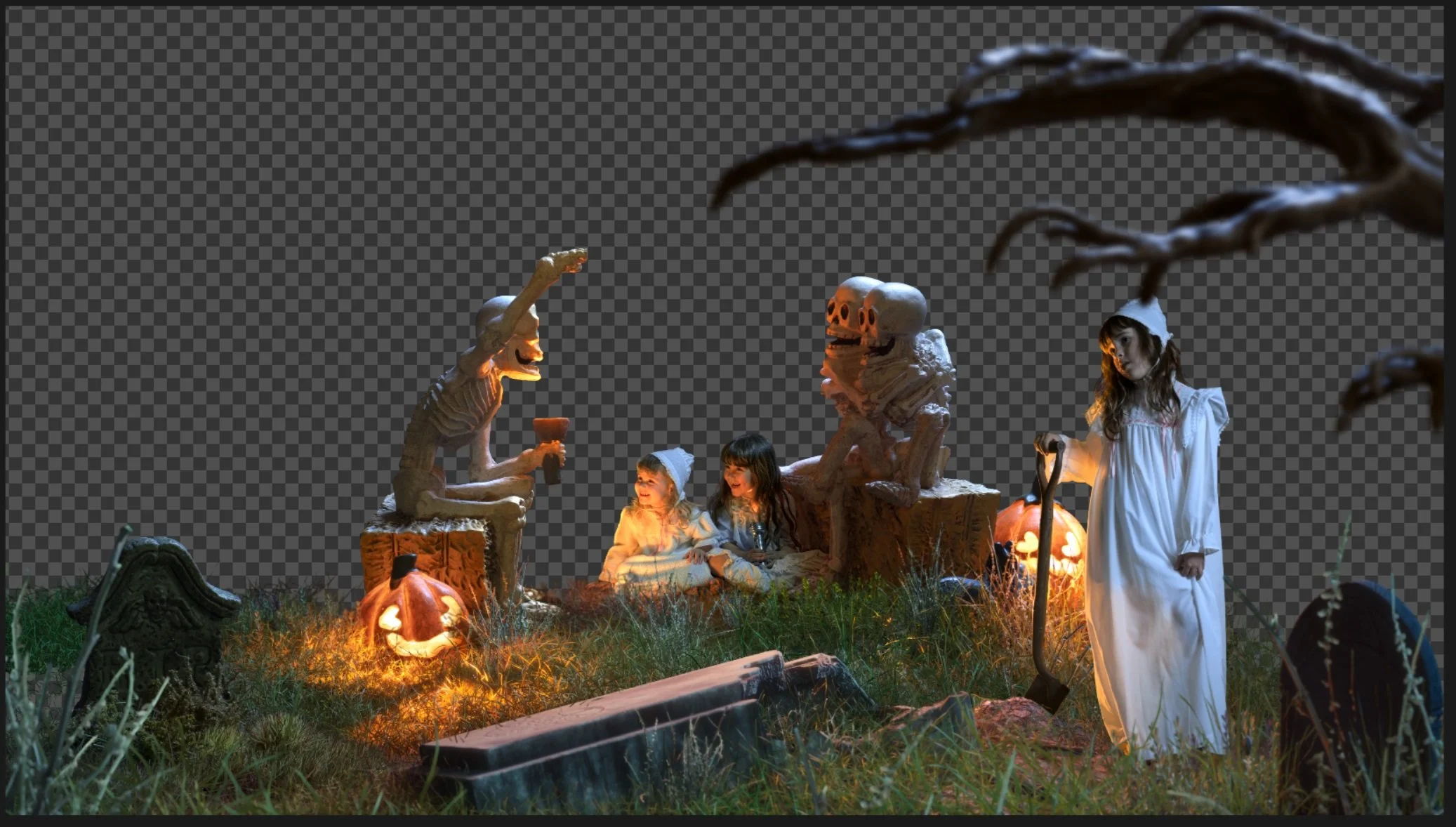 The initial planning phases for this project were all about seeing what kind of spooky miniatures we could find. Luckily there are quite a few places that make great little props for Halloween decorations. We also incorporated a bunch of other miniatures for miscellaneous objects like rocks and grass that would make the world even more uncanny.